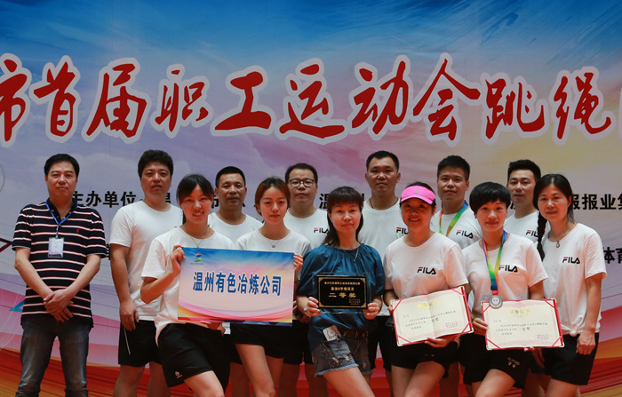 最終,冶煉公司榮獲集體8字跳繩二等獎,陳奇、林西分獲中年男子組、中年女子組二等獎。