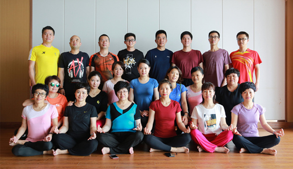 當(dāng)天中午,學(xué)員們早早來到學(xué)習(xí)場地。課堂上,老師認(rèn)真地為學(xué)員們做示范,學(xué)員們認(rèn)真學(xué)習(xí)瑜伽的基礎(chǔ)動作以及如何用調(diào)節(jié)呼吸節(jié)奏的方式來放松身體。'吸氣…呼氣…放松…,手指張開…抬手…',在舒緩的音樂襯影下,瑜伽老師帶領(lǐng)學(xué)員們沉浸在美妙的瑜伽意境之中,令人心安神迷,樂在其中。開班第一課,學(xué)員們興趣濃厚、反響較好。