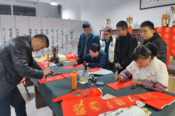 在新春來(lái)臨之際,冶煉公司書(shū)法愛(ài)好者利用午休,在職工活動(dòng)室揮毫潑墨寫(xiě)春聯(lián)迎春送福。
