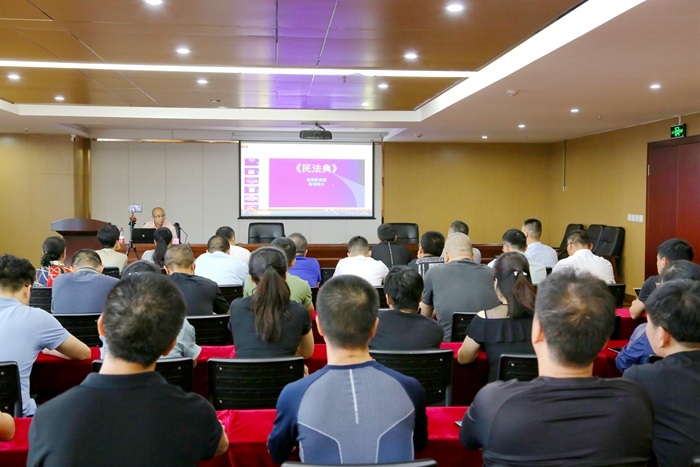 為普及《民法典》知識,2020年7月29日下午,公司特邀請常年法律顧問全克平律師開展《民法典》專題講座。近50名職工現(xiàn)場聆聽,并通過釘釘平臺現(xiàn)場直播。