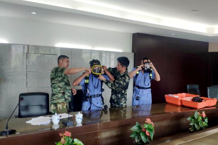 消防隊(duì)員結(jié)合該公司水處理工藝及流程,以輕型防化服與正壓式空氣呼吸器的正確組合穿戴為切入點(diǎn),為現(xiàn)場(chǎng)工作人員全面系統(tǒng)介紹消防應(yīng)急裝備的參數(shù)性能、操作使用及維保方法,并指導(dǎo)大家開展現(xiàn)場(chǎng)穿戴體驗(yàn)。通過模擬現(xiàn)場(chǎng)處置方式增強(qiáng)應(yīng)急救援臨場(chǎng)感,從而快速了解熟悉專業(yè)應(yīng)急救援知識(shí)并掌握正確穿戴和使用消防應(yīng)急裝備的能力。