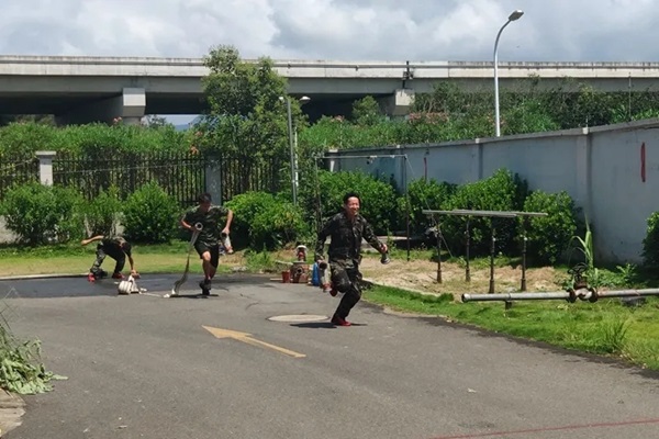 炎炎烈日下,消防隊員剛脫下密不透風(fēng)的防化服,就馬不停蹄地進(jìn)行單杠、折返跑、翻網(wǎng)扛假人等一系列訓(xùn)練。這是金海公司專職消防隊員為即將到來的市應(yīng)急救援技能競賽作最后沖刺。