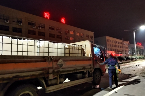 應(yīng)急救援隊(duì)7名隊(duì)員到達(dá)現(xiàn)場(chǎng),實(shí)施緊急救援。經(jīng)現(xiàn)場(chǎng)偵查后發(fā)現(xiàn),事故起火原因?yàn)槁短煲兹计范蚜弦l(fā),現(xiàn)場(chǎng)火勢(shì)較為兇猛,無(wú)受困人員,轄區(qū)消防救援中隊(duì)正在撲救火勢(shì)。指揮員虞智勇通過(guò)詢問(wèn)單位負(fù)責(zé)人得知,火災(zāi)現(xiàn)場(chǎng)及周圍存放一定量的硫酸及磷酸混合物,受火勢(shì)高溫影響,隨時(shí)可能引發(fā)泄露及爆炸。指揮員立即下達(dá)作戰(zhàn)命令,七名隊(duì)員全力協(xié)助轄區(qū)消防隊(duì)控制火勢(shì)。廠房二樓存放桶裝混酸,但由于現(xiàn)場(chǎng)火勢(shì)較大,儲(chǔ)存環(huán)境較為復(fù)雜,暫不符合物資轉(zhuǎn)移條件,金海公司受經(jīng)開(kāi)區(qū)應(yīng)急管理局委托安排物資轉(zhuǎn)移人員留守現(xiàn)場(chǎng)待命。