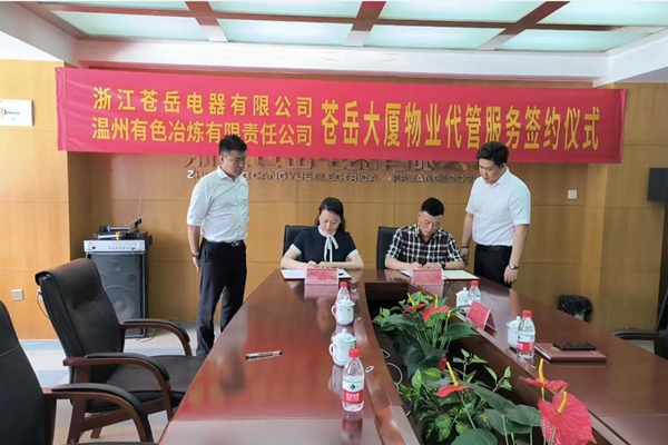 6月30日上午,溫冶物業(yè)與浙江蒼岳電器有限公司在蒼南靈溪正式簽署蒼岳大廈物業(yè)代管服務(wù)合同。